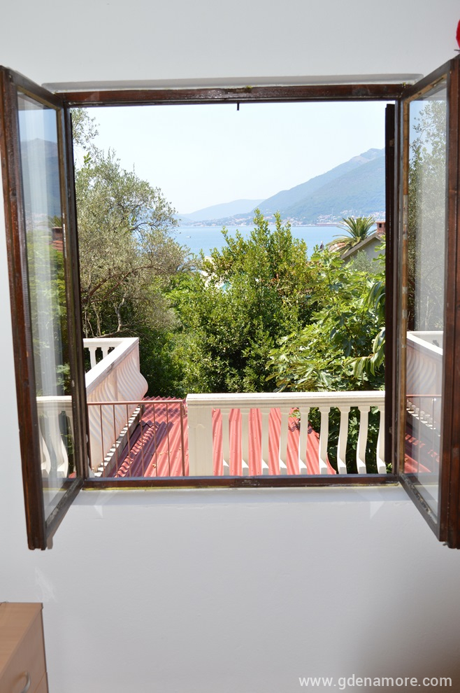 Ich vermiete eine Apartment-Etage eines Hauses mit zwei Vierbettzimmern, zwei Badezimmern, einer Küche, die sich auf eine große Balkonterrasse mit Meerblick öffnet.