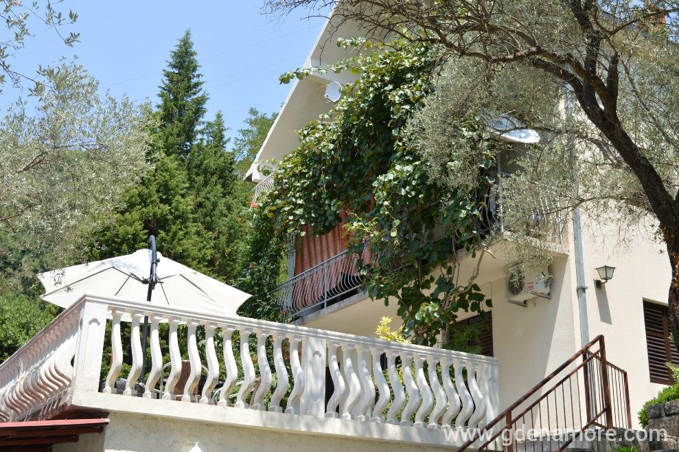 Izdajem apartman-sprat kuce sa dve cetvorokrevetne sobe,dva kupatila,kuhinjom koja izlazi na veliku balkon terasu sa pogledom na more.